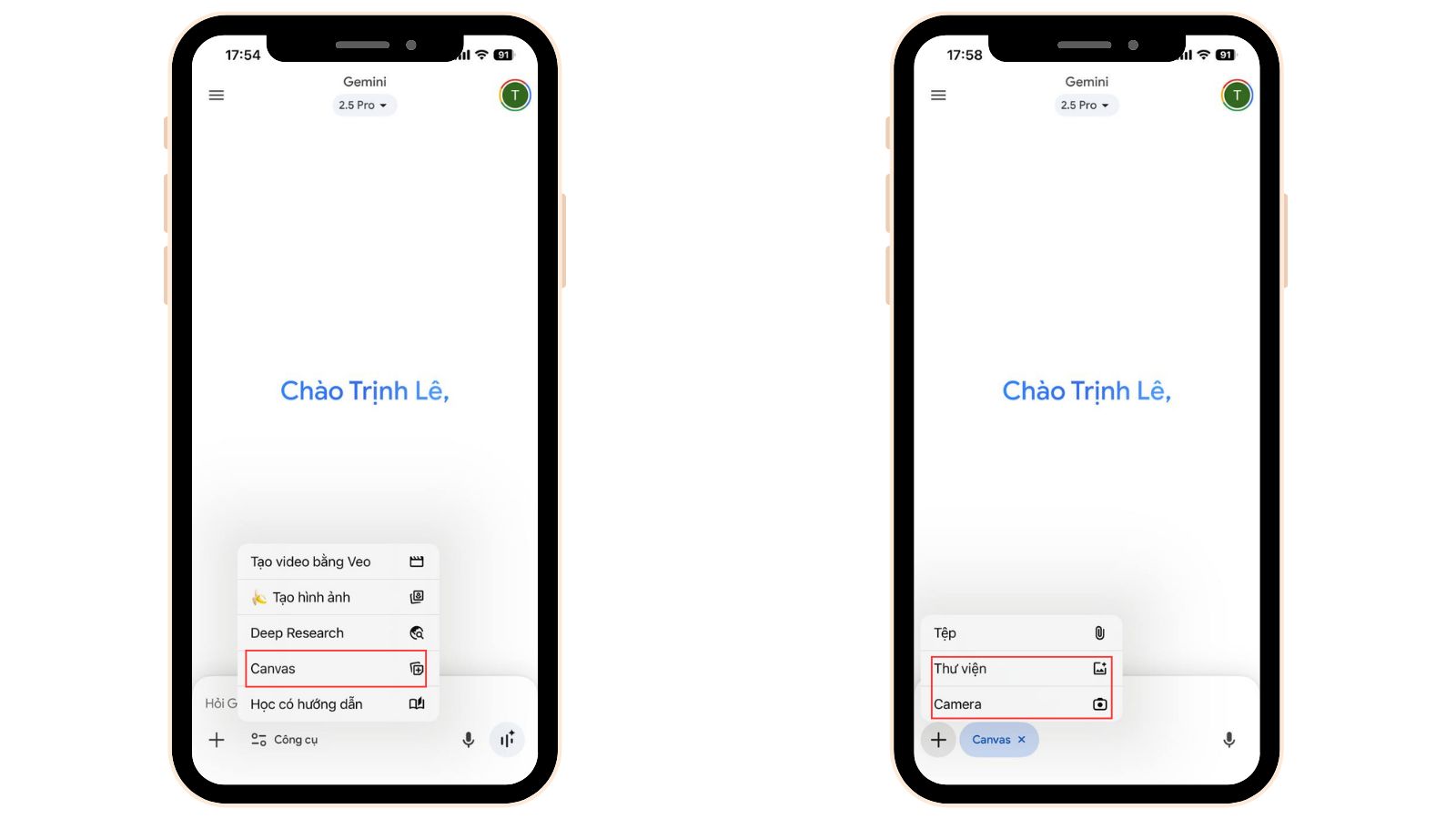 Để bắt đầu, bạn cần truy cập vào trang web hoặc ứng dụng trên điện thoại của Gemini và đăng nhập bằng tài khoản Google của bạn. Tại giao diện chính, ngay bên dưới ô nhập lệnh, bạn sẽ thấy tùy chọn “Canvas” nằm ở trong ô công cụ. Hãy chọn nó để mở tính năng. Khi đã ở trong Canvas, bạn nhấn vào biểu tượng dấu “+” để chuẩn bị tải tài liệu lên. Bạn có thể chọn ảnh có sẵn từ thư viện thiết bị hoặc sử dụng camera để chụp trực tiếp tài liệu.