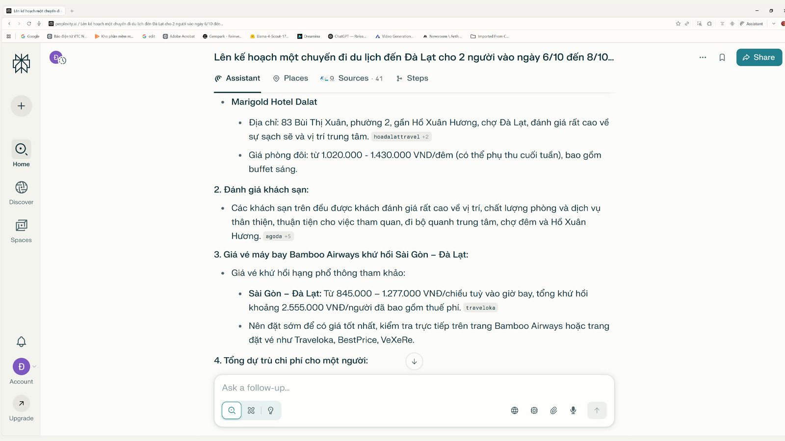 Các tác vụ tự động này là công cụ tiết kiệm thời gian hiệu quả nhất. Việc lên kế hoạch du lịch hay tạo lộ trình nhiều điểm tham quan nếu làm thủ công thì sẽ tốn rất nhiều công sức tìm kiếm. Thay vì phải mở nhiều trang web và tự thao tác thủ công, mình chỉ cần đưa ra các câu lệnh để Comet thực hiện toàn bộ công việc.